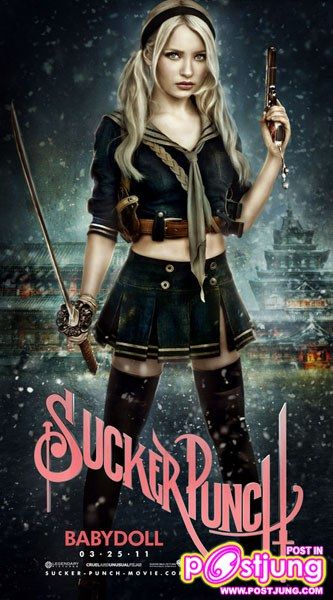 โพสท์โดยSucker Punch เป็นเรื่องราวที่เกิดขึ้นในปี 1950's เกี่ยวกับเด็กสาวที่ต้องการจะหนีจากความโหดร้ายที่เธอได้รับจากพ่อเลี้ยง และถูกจับส่งเข้าโรงพยาบาลบ้า ซึ่งเธอจะต้องเข้ารับการรักษาอาการผิดปกติทางสมองในอีก 5 วันข้างหน้า เธอจึงเริ่มสร้างโลกในจิตนาการขึ้นมา เพื่อที่จะหนีจากความจริงที่เธอต้องเจอโดยมีการวางแผนการหนี และต้องขโมยของ 5 สิ่งมาเป็นเจ้าของให้ได้ เพื่อที่จะช่วยให้เธอหนีพ้นก่อนที่จะถูกจับได้โดยมารร้าย !!