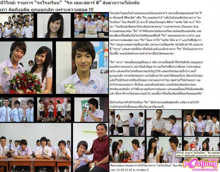 โพสท์โดยข่าวด่วน! เนื่องจากในวันที่ 15 ส.ค. 53 รถโรงเรียนงดออกอากาศ เนื่องจากติดการถ่ายทอดสดรายการพิเศษจากทางสถานีครับ ทำให้เทปรายการตอน ริท เดอะสตาร์จะถูกเลื่อนไปออกอากาศในวันที่ 22 ส.ค. 53 แจ้งให้ทราบโดยทั่วกันนะครับ