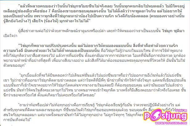 ปุ๊กลุกกล่าวว่า “คิดว่าท่าทางพี่เขาน่าจะเอ็นดูน้องๆ ในช่องมากกว่า เหมือนต้อนรับที่เราเข้าวงการมาใหม่ หนูไม่คิดว่าพี่เขาเป็นคาสโนว่านะ หนูกลับมองว่าเขาเป็นคนที่มีมิตรภาพ ทำให้คนรอบข้างที่อยู่ด้วยมีความสุขมีเสียงหัวเราะ”