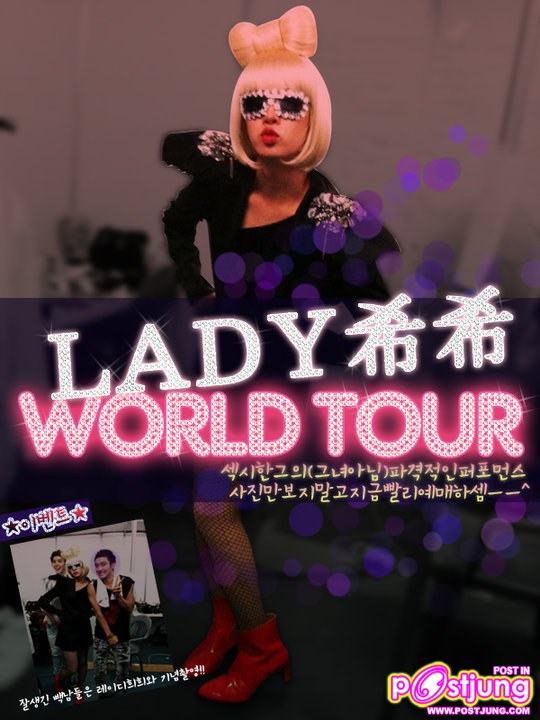 โพสท์โดยคิมฮีชอล แห่ง ซุปเปอร์จูเนียร์ แปลงโฉมเป็นเลดี้กาก้า โดยมีนามใหม่ว่า..'ฉันคือเลดี้ฮีฮี!