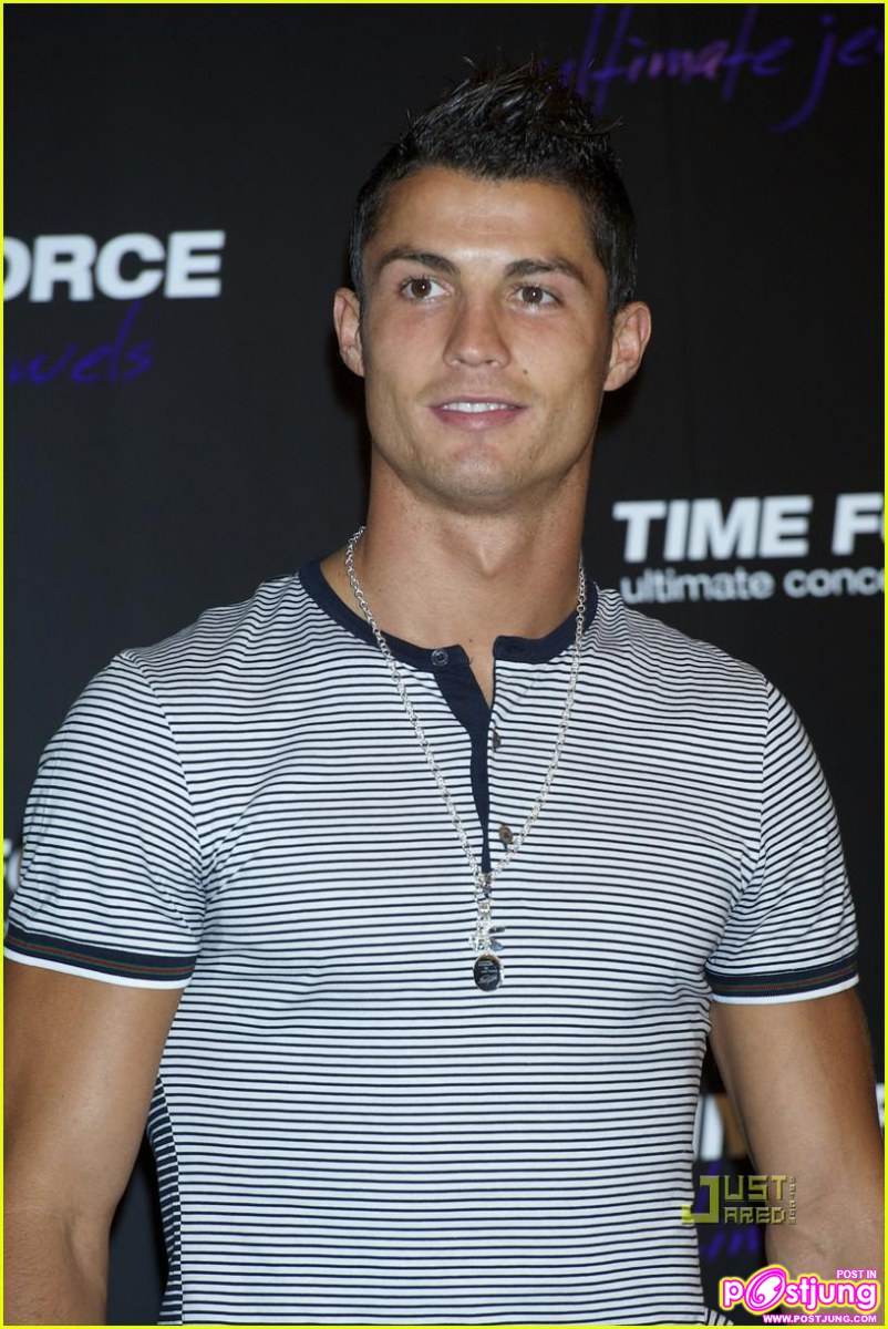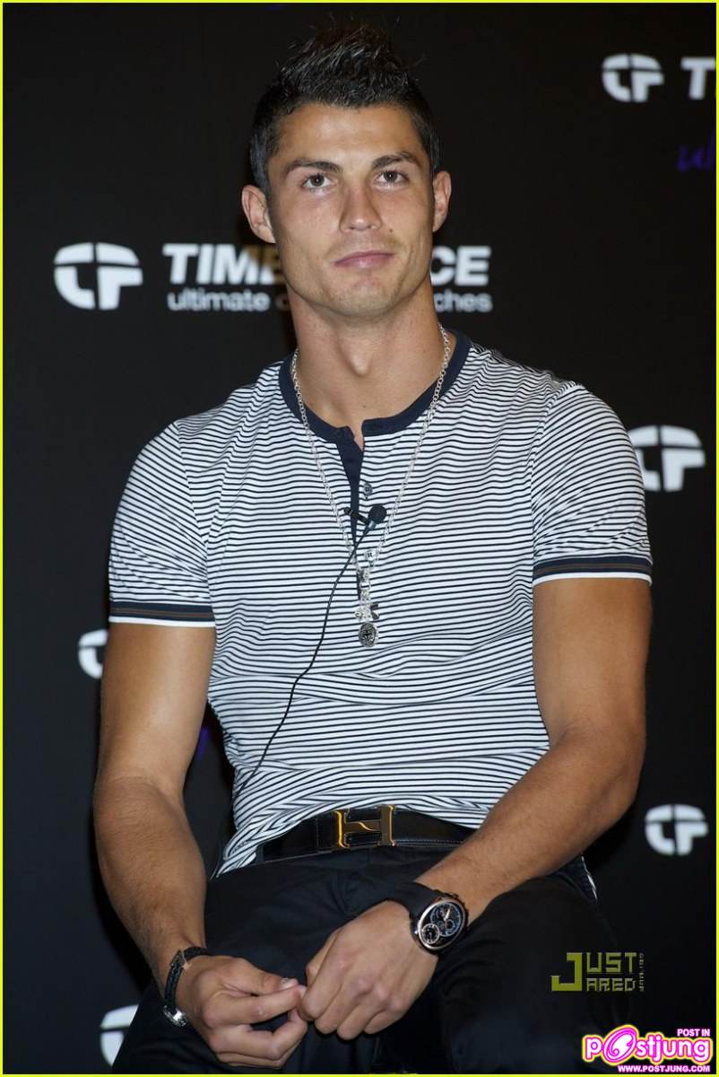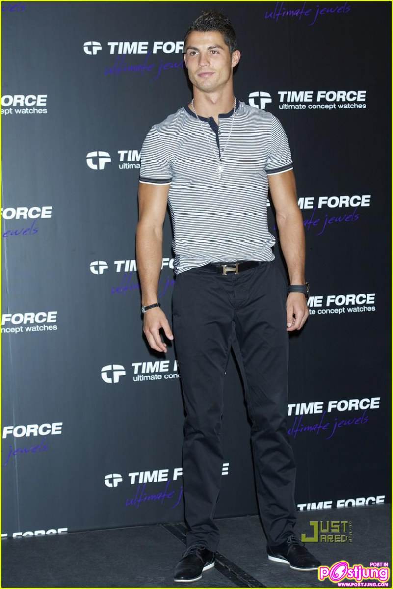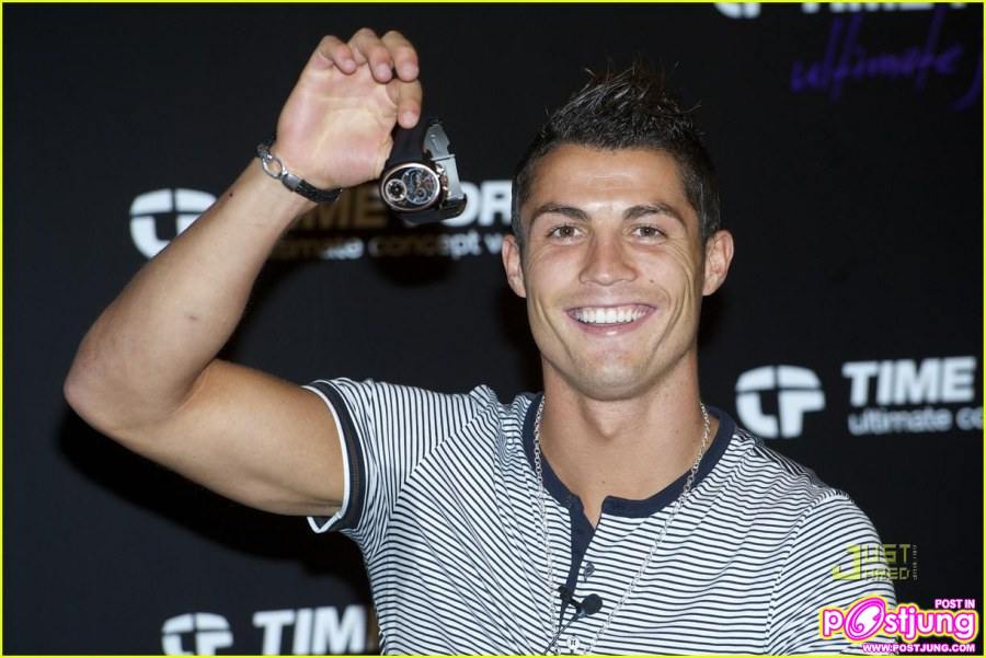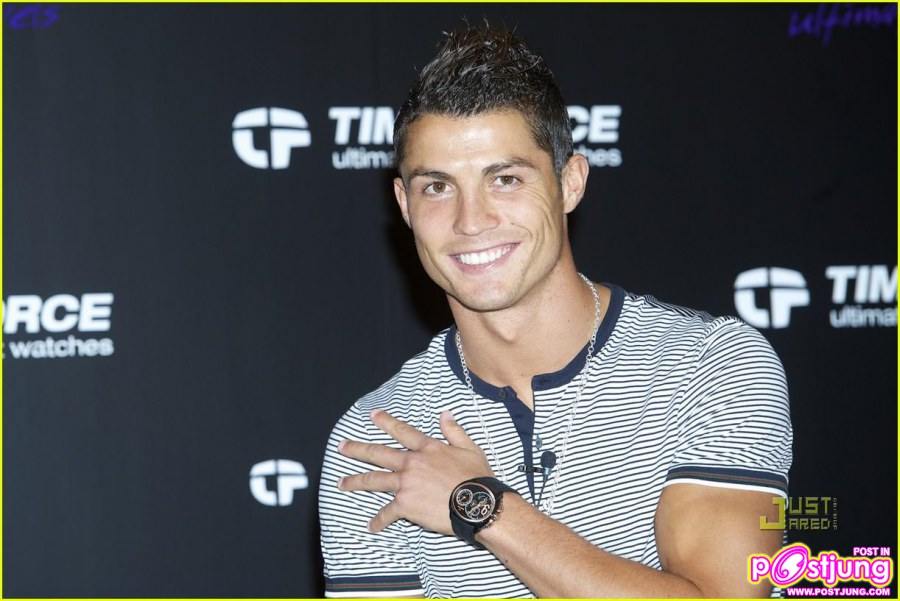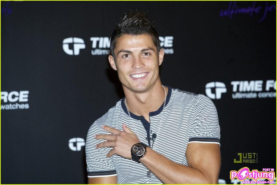 โพสท์โดยCristiano Ronaldo shows off his Time Force watch at a photocall for the timepiece brand on Wednesday (September 8) at the Puerta de America Hotel in Madrid, Spain