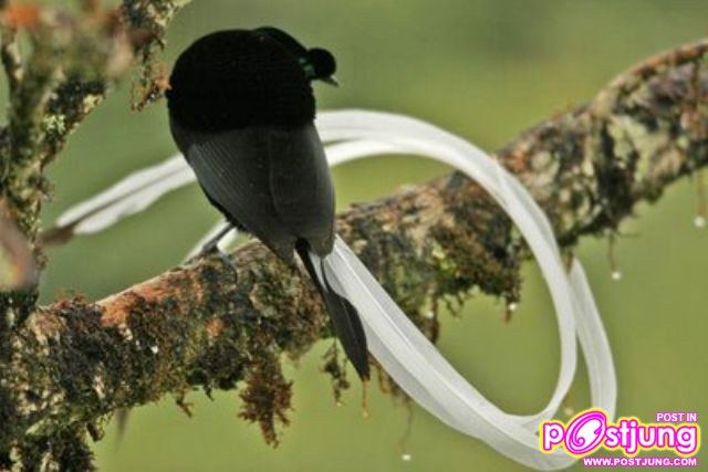 เหล่าปักษาสวรรค์นี้มีจุดเด่นที่ขนหางอันงดงามวิจิตรของนกตัวผู้่ ที่ใช้เกี้ยวพาราสีนกตัวเมีย