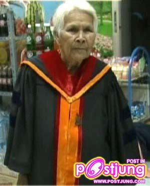 คุณยาย ไฮ ปลื้มสวมชุดครุยปริญญารัฐศาสตร์ ถ่ายรูปกับผู้บริหาร