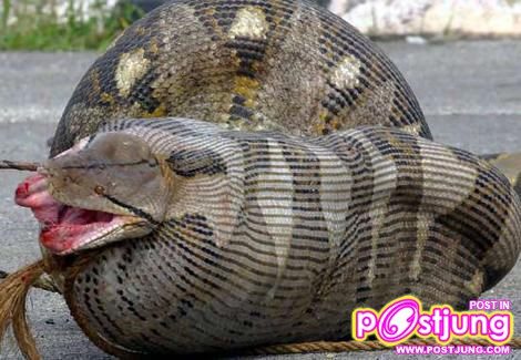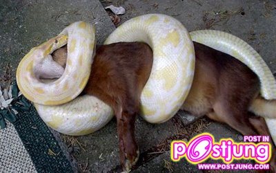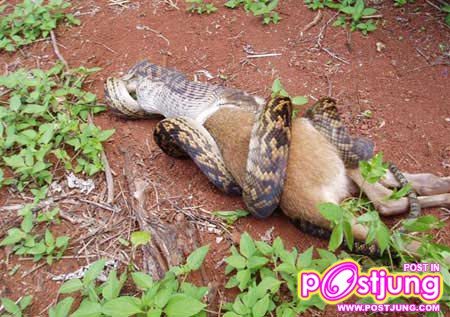 โพสท์โดยวิธีรัดเหยื่อและการกินเหยื่อของงูเหลือม