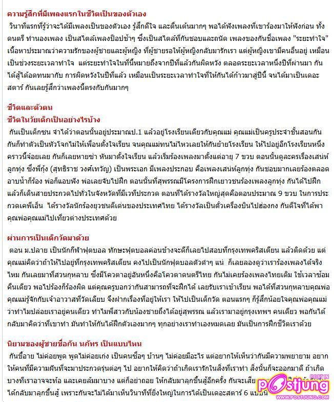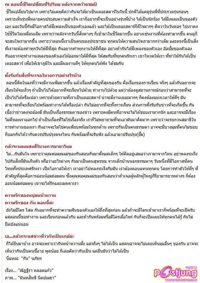 โพสท์โดยนอกเหนือจากการประกวด KPN Junior น้องกันก็พักการประกวดร้องเพลงไปยาวเลยเนื่องจากให้ความสำคัญกับการเรียนนะคะ (ยกเว้นประกวดร้องเพลงไทยเดิมในนามของโรงเรียนสวนกุหลาบ)