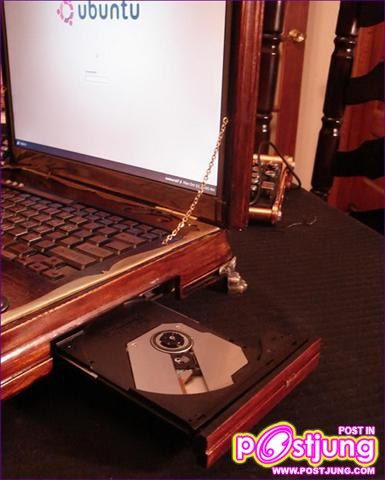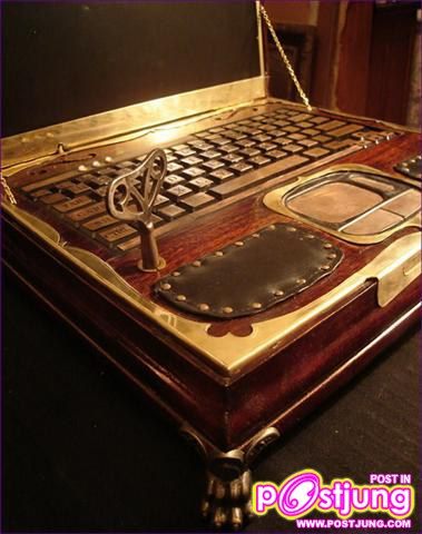 โพสท์โดยสุดจะบรรยายกับ โน้ตบุ๊กยุคเครื่องจักรไอน้ำ ที่ทำออกมาได้แบบว่า โบราณสุดๆ เลยครับ เห็นแล้วอึ้ง แต่ว่ามันกลายเป็นจุดเด่น ที่ทำให้ใครต่อใครหลายคนอย่างเห็น อยากชมมัน แถมดูเหมือนกับว่าเป็น กล่องเพลงโบราณอีกตังหากโน้ต บุ๊กโบราณรุ่นนี้ สร้างจากงานฝีมือด้วยไม้ ด้วยการใช้โน้ตบุ๊ก HP ZT1000 ฝังลงไป สามารถรันการทำงานได้ทั้ง Windows XP และ Ubuntu Linux โดยมีฟีเจอร์เด่นอยู่ที่ นาฬิกาด้านหน้าที่อยู่ภายใต้กรอบกระจก แถมยังทำให้คีย์บอร์กับเมาส์กลายเป็นของโบราณอีกด้วย มีซีดีรอมที่เปิดใช้งานได้จริงๆ เท่ห์มากๆ เลยครับ ลองดูรูปด้านล่างกันเองเลยนะครับ